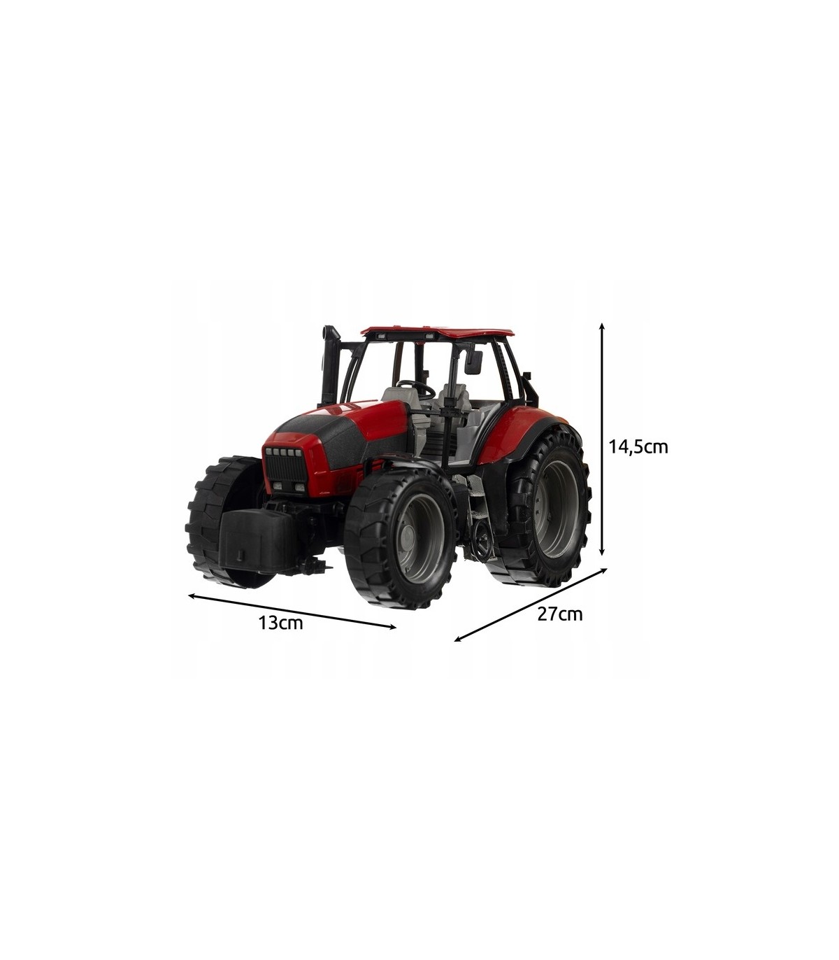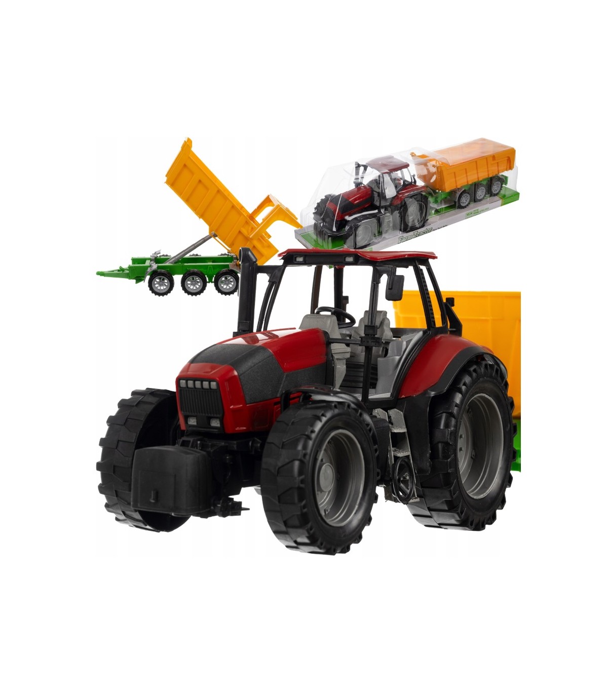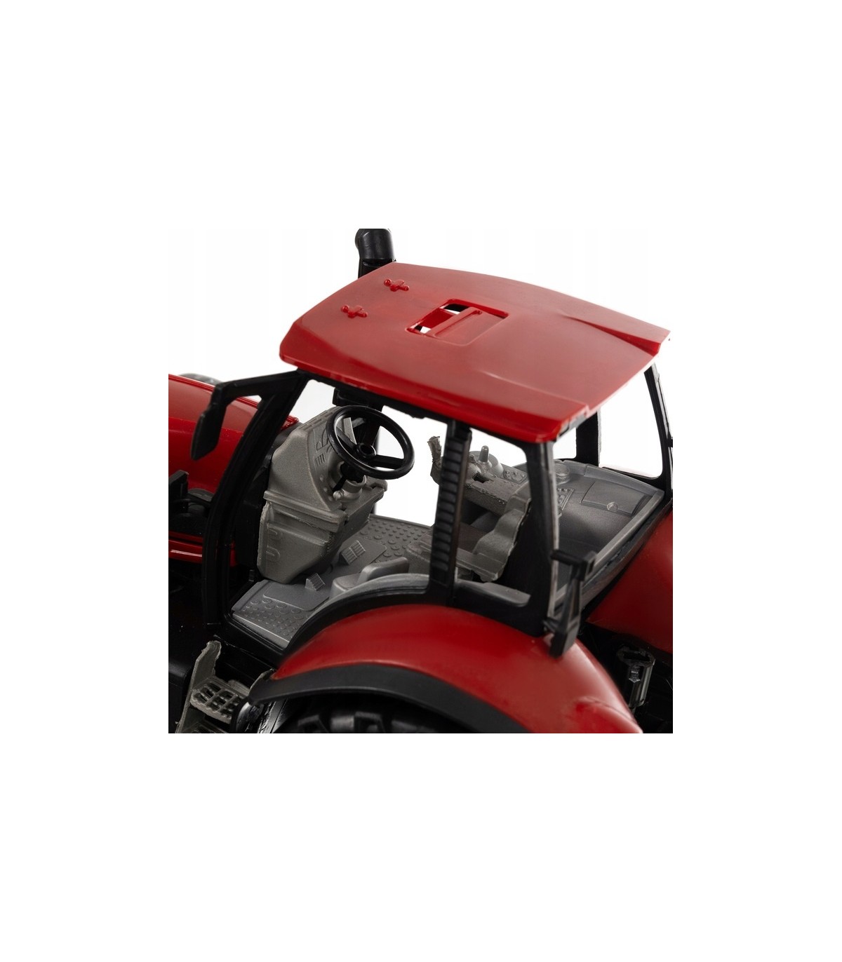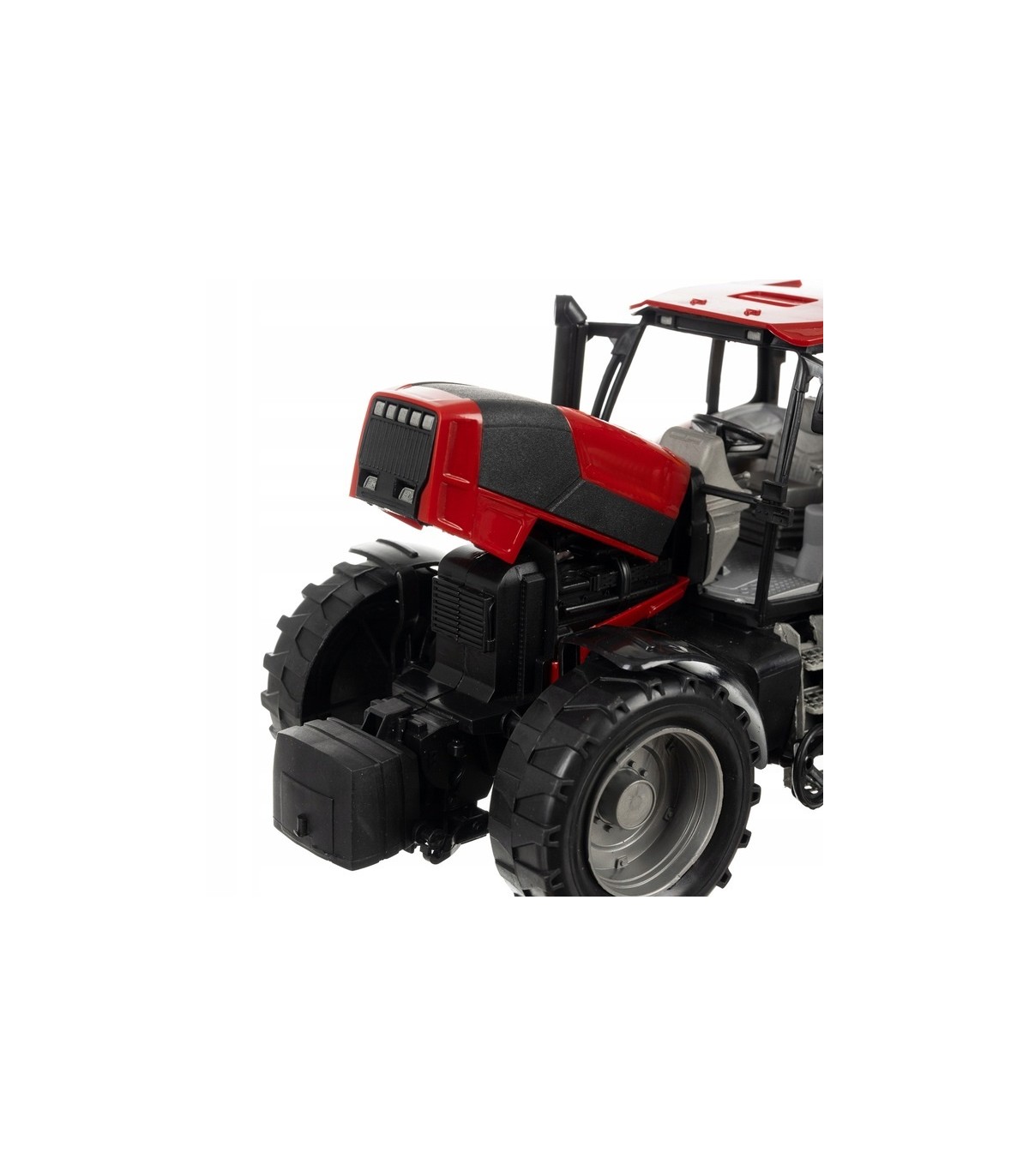 • WYSOKA JAKOŚĆ MATERIAŁÓW I PRECYZYJNE WYKONANIE - traktor z przyczepą to zabawka, która zachwyci każdego małego miłośnika rolnictwa! Wykonany z wysokiej jakości tworzywa ABS, charakteryzuje się niezwykłą dbałością o detale, zwłaszcza w kabinie. Wnętrze traktora odzwierciedla rzeczywisty wygląd maszyny rolniczej, co sprawia, że zabawa staje się jeszcze bardziej realistyczna. Klasyczny czerwony kolor, szerokie i solidne koła oraz podnoszona do góry maska dodają mu autentycznego wyglądu.