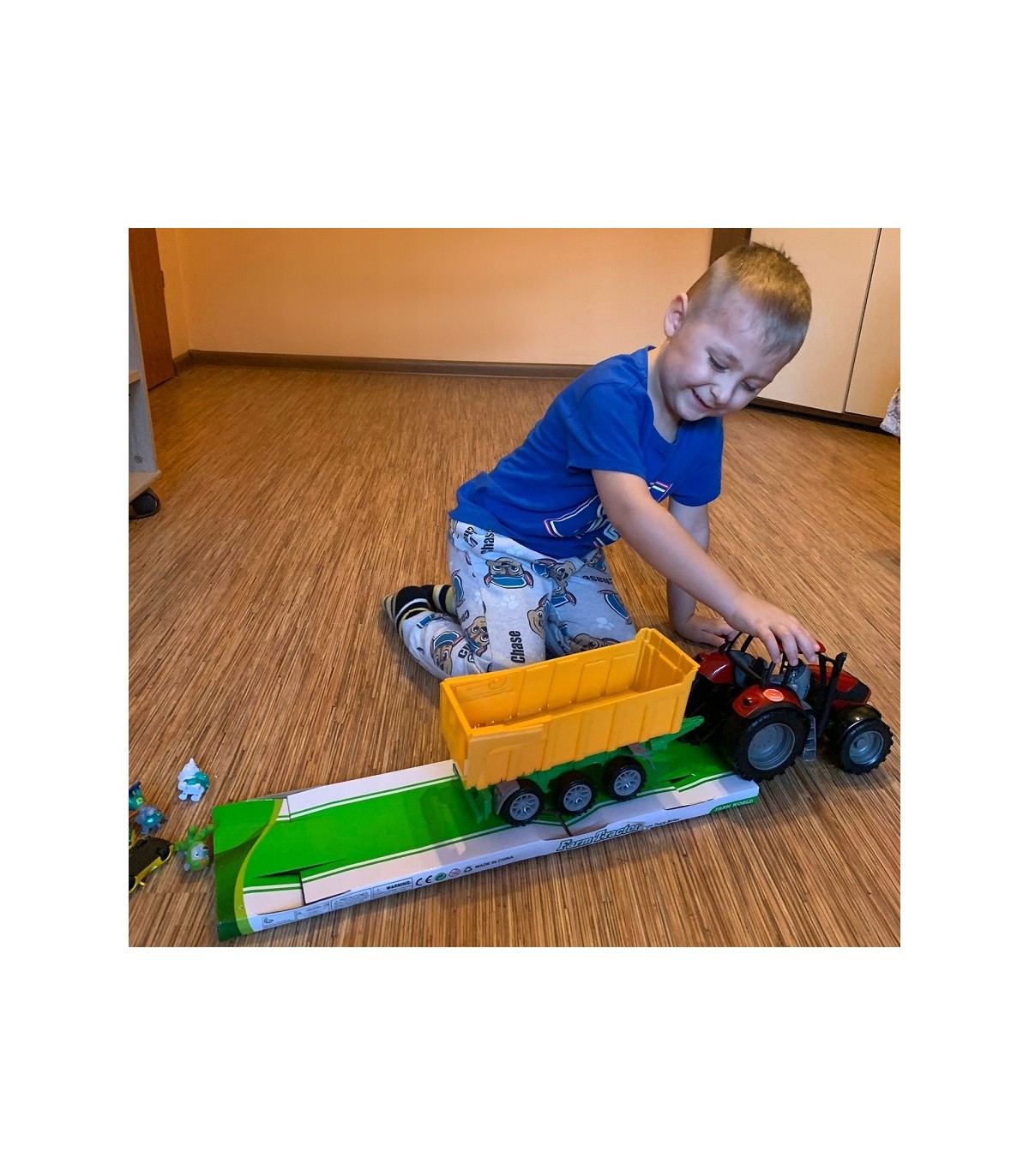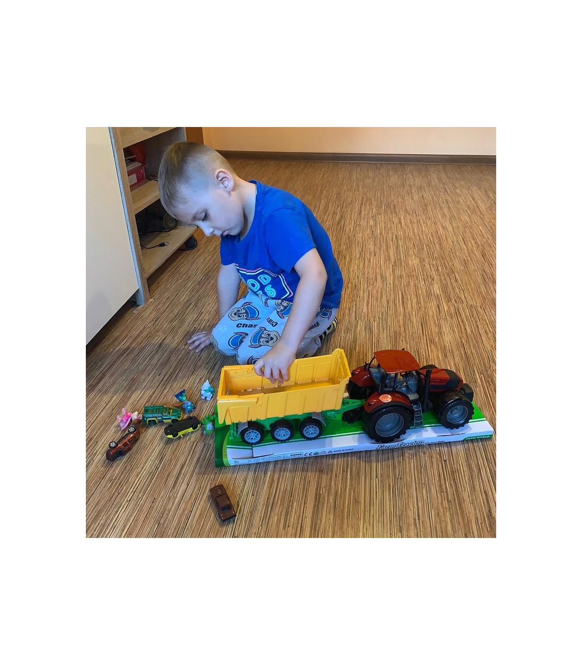 Dzieci mogą korzystać z zestawu traktora z przyczepą w różnych miejscach. Mogą bawić się na świeżym powietrzu, symulując prace rolnicze na trawie czy piasku.