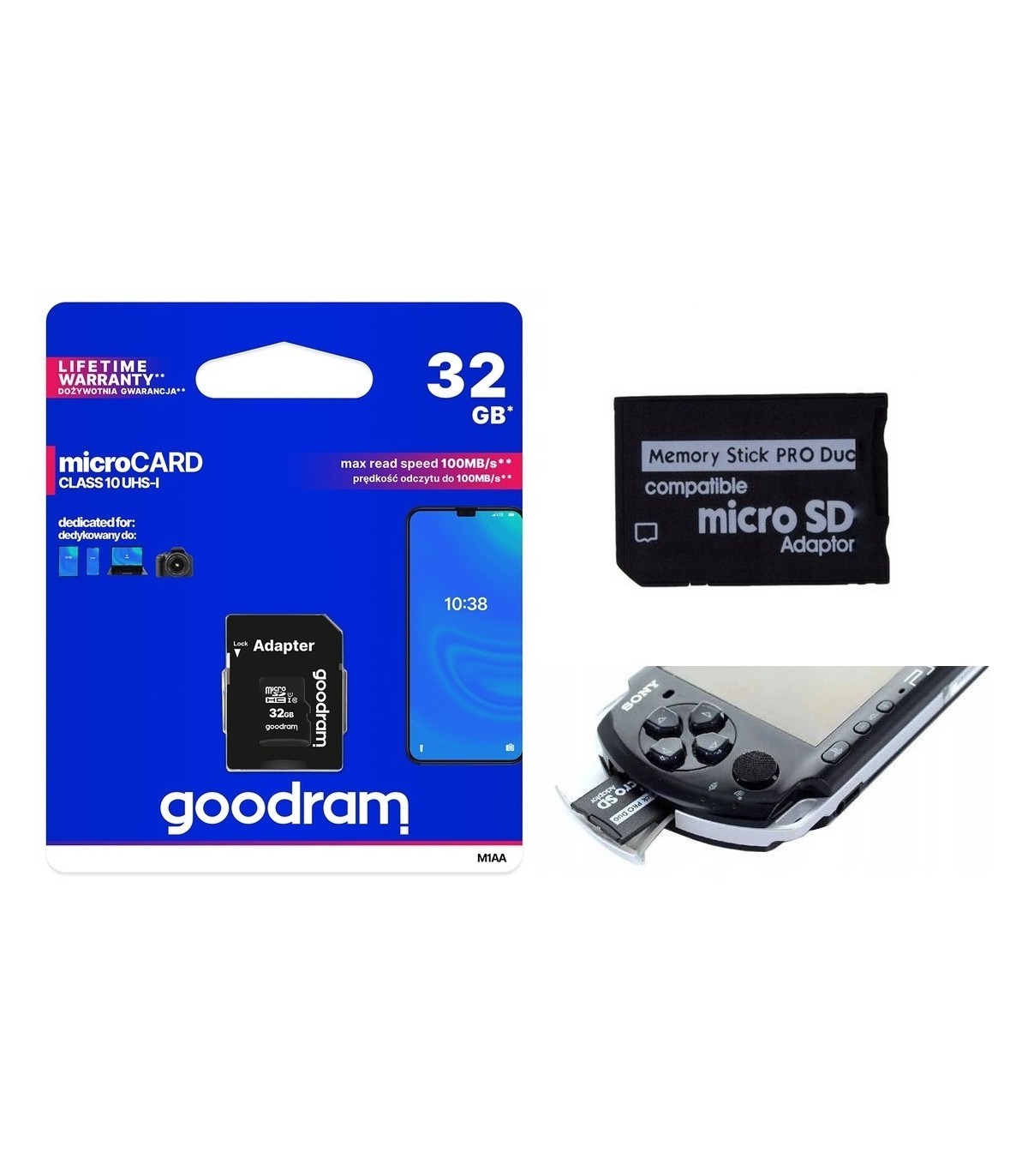 Oryginalna karta pamięci 32GB microSDHC class 10 + adapter SD + adapter MS PRO DUO do PSP