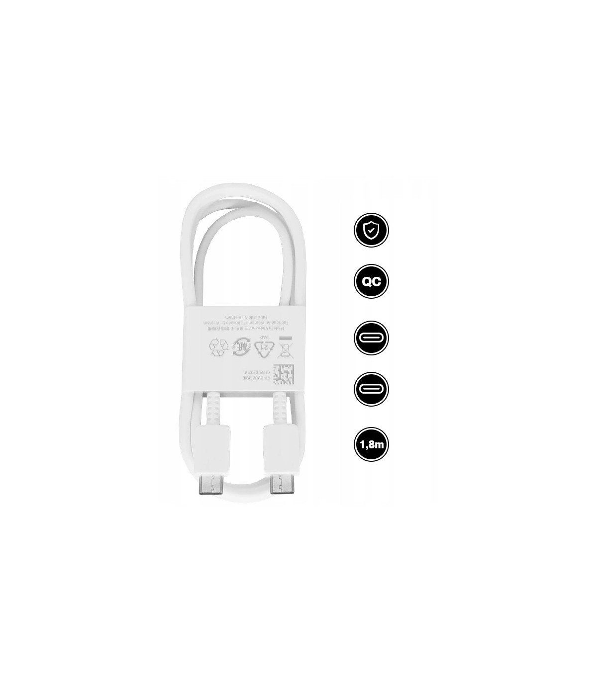 Oryginalny kabel Samsung USB-C do USB-C EP-DW767 do ładowania 1.8m 3A 25W / 45W Biały