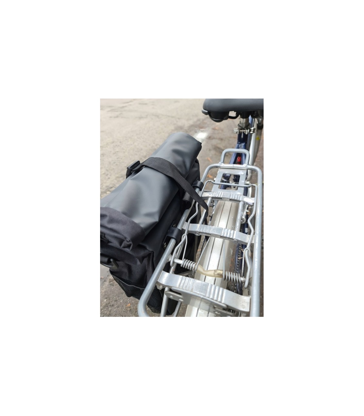 - MONTAŻ NA HAKI DO BAGAŻNIKA – jest to torba, która pasuje do wszystkich rowerów z bagażnikiem. Zawdzięcza to 2 hakom oraz uchwytowi na rzep, dzięki którym można łatwo i szybko dostosować montaż do szerokości bagażnika.