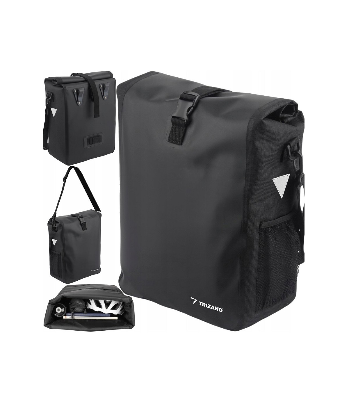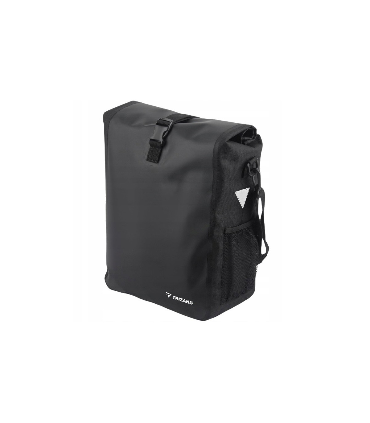Praktyczne elementy odblaskowe są po bokach torby. Jest to dodatkowe zabezpieczenie dla rowerzysty, zwiększające jego widoczność na drodze po zmroku.