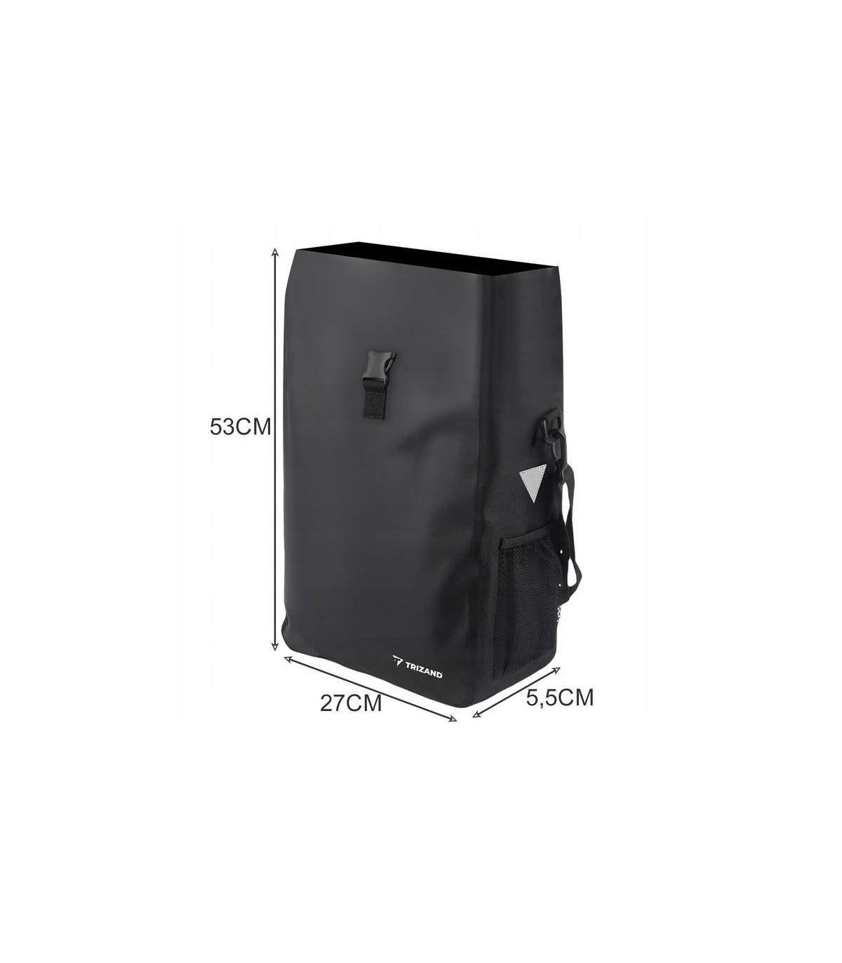 - SPECYFIKACJA - materiał: PVC + oxford 500D; pojemność: 15l; montaż: na bagażnik; odblaski: tak; komora:1; kieszeń: 1; wymiary: 53 x 27 x 15,5 cm; waga: 542 g; waga w opakowaniu: 558 g
