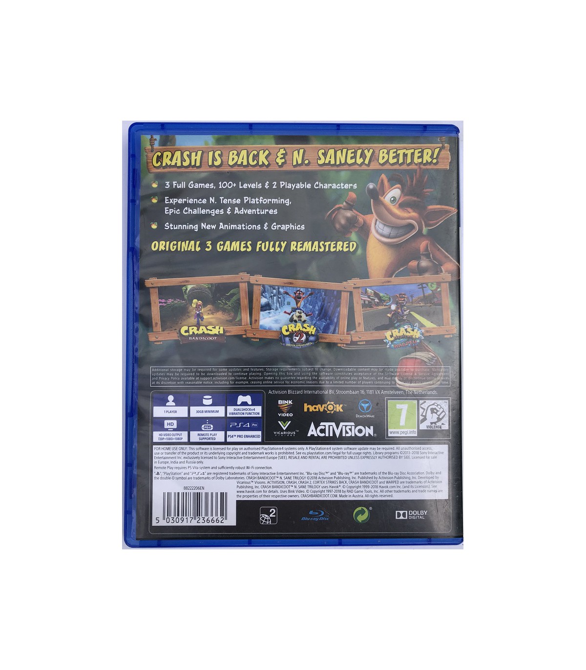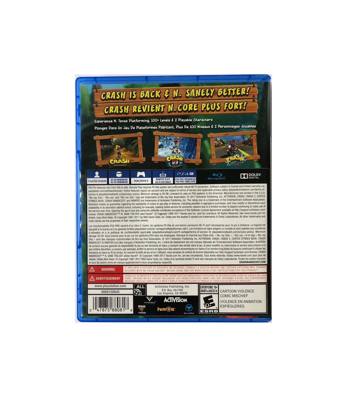 Crash Bandicoot N. Sane Trilogy to paczka trzech zremasterowanych hitów: Crash Bandicoot, Crash Bandicoot 2: Cortex Strikes Back oraz Crash Bandicoot 3: Warped.